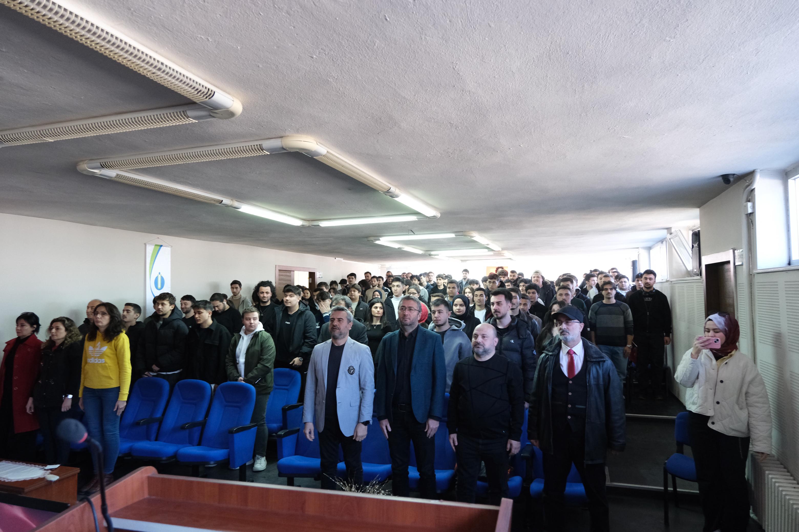 Program İstiklâl Marşımızın coşkuyla okunması ve başta Gazi Mustafa Kemal Atatürk olmak üzere büyük komutan, devlet adamlarımız, şehit ve gazilerimizin manevî huzurlarında saygı duruşunu takiben TBMYO Müdürümüz Prof. Dr. Kürşat Korkmaz'ın konuşması ile başladı.